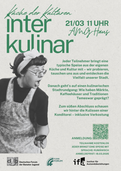Ob Temeswar/Timișoara tatsächlich bunt, multikulturell und lecker schmeckt, kann man am Samstag, den 21. März, ab 11 Uhr, im Adam-Müller-Guttenbrunn-Haus bei „Inter Kulinar“ entdecken. Teilnehmer jeder rumänischer Minderheit sind eingelanden mitzumachen und ein für sie typisches Gericht mitbringen.