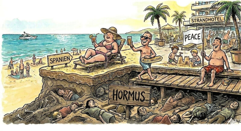 Diese Gewinne sind kein Zufall. Keine Leistung. Kein Verdienst. Sie sind das direkte Resultat davon, dass in Dubai gerade Raketentrümmer vor Luxushotels fallen oder in der Straße von Hormus Öltanker versinken. Wäre der Krieg nicht, wären diese Buchungen nicht. Die Tourismusbranche nennt es „Nachfrageverschiebung“. Das ist die Sprache der Betäubung – man narkotisiert das Gewissen mit Businessvokabular, während die Kassen klingeln.
