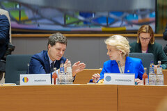 Brüssel (ADZ/dpa) – Die Staats- und Regierungschefs der 27 EU-Staaten, darunter Rumäniens Präsident Nicușor Dan, sind am Donnerstag zu einem Gipfeltreffen zusammengekommen, zu dessen Kernthemen die weitere Unterstützung der EU für die Ukraine und die Aufrüstung Europas gehörten. Davor hatte die EU-Kommission vier Leitprojekte für die europäische Verteidigung vorgestellt – nämlich eine Drohnenabwehr-Initiative, sodann die Sicherung der östlichen EU-Außengrenzen, ein europäischer Luftschutz- sowie ein Weltraumschutzschild. Ziel sei es, Europa bis 2030 verteidigungsbereit zu machen, da „die Gefahr auch nach Ende des Ukraine-Krieges nicht verschwinden“ werde, so die EU-Außenbeauftragte Kaja Kallas. Aus Sicht der EU-Kommission sind vor allem der geplante „Drohnenwall“ und die als „Eastern Flank Watch“ bezeichnete Sicherung der Ostgrenze dringlich – beide Projekte sollen daher bis Ende kommenden Jahres eine erste Einsatzfähigkeit erreichen.