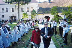 Das Schlussritual des diesjährigen Sachsentreffens setzte eine kleine Wanderung auf den Zeidner Berg voraus. Ziel: der dort in die Wiese auf dem Zeidner Schulfestplatz eingegrabene „Wunderkreis“. Am Ende jedes Schul- bzw. Kronenfestes mit verschiedenen Wettbewerben gingen früher alle Kinder zu den Klängen des „Postillion-Marsches“ im Gänsemarsch durch diese Spirale. Anschließend erhielt jeder einen Kipfel – daher auch der Name „Kipfelmarsch“. Wie alt genau dieser Brauch ist, kann niemand genau sagen. Zum Sachsentreffen durften auch die Erwachsenen mitmarschieren – und den Kipfel bekamen auch „Seiteneinsteiger“, die nicht durch die ganze Spirale mitgelaufen waren. Auch traditionelle Bräuche lassen kleine Freiheiten zu. Gut so!