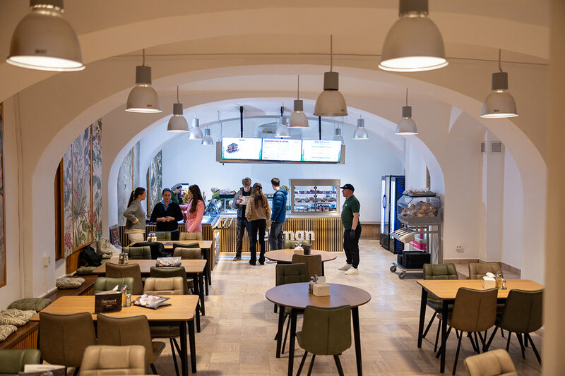 Die Honterus-Cafeteria ist auch für Veranstaltungen vorgesehen: Lesungen, Sitzungen oder Buchpräsentationen können hier stattfinden. „Vielleicht könnte man hier Englischstunden abhalten, bei denen Schüler in Englisch bestellen und sich über Essen unterhalten“, schlug Engel vor. Nicolae Savin, stellvertretender Generalschulinspektor, betonte, wie wichtig es sei, dass sich die Schüler in unmittelbarer Nähe der Schule befinden – insbe-sondere, um den Konsum von Fast-Food oder Süßigkeiten aus der Umgebung zu reduzieren.