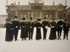 Ein grauer Januarvormittag. Die Zinne ist in eine dicke Nebelwolke eingewickelt. Auf dem Olimpia-Eislaufplatz ertönt laute Radio-Musik. Ein paar Teenager drehen ihre Runden auf dem Eis, ein Mädchen übt Pirouetten. Aus der ersten Etage des Olympia-Sportmuseums kann man die Eisläufer gut beobachten. Auch im Jahr 1905 schwebten Menschen in Schlittschuhen hier über das Eis. Ein Schwarz-Weiß-Foto von Heinrich Lehmann, das im Sportmuseum ausgestellt ist, zeigt eine Gruppe von elegant gekleideten Leuten auf dem Eislaufplatz. Die Männer tragen Zylinder, die Frauen lange Samtkleider mit Rüschen und schicke Hüte – als würden sie auf einen Ball gehen.