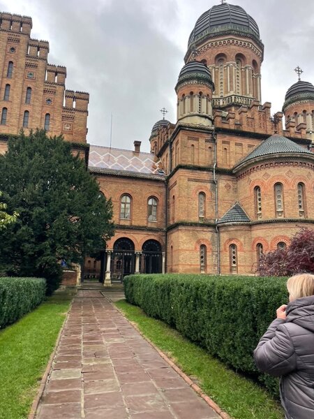 Jeder Ort, jedes Objekt und jede Landschaft ist durch eine eigene Atmosphäre geprägt. Es kommt vor, dass bestimmte Umgebungen oder Personen eine Stimmung hervorrufen, die mit eigenen Empfindungen harmoniert. Dies war der Fall bei meinem zweiten Besuch in Czernowitz/Cernăuți in der Bukowina vor rund einem Monat. Meine Verbindung zur Stadt entstand durch die Geschichte einer Czernowitzerin, der meine Großmutter bei ihrer Flucht während des Zweiten Weltkriegs für zwei Jahre eine Unterkunft in unserem Haus im Banat geboten hat. Die Bauwerke und das Ambiente des ehemaligen Kronlandes erinnerten mich an Temeswar, eine weitere Stadt der Habsburger Monarchie, die mir als Banaterin vertraut ist. Die Jugendstilbauten und vielfältige Stuckverzierungen verleihen der Stadt bei herbstlichem Licht ein freundliches und einladendes Erscheinungsbild. Herrscht nicht Krieg in diesem Land? Zum Glück ist die Stadt davon nicht unmittelbar betroffen. Außer Sandsäcken an den Kellerfenstern der großen Gebäude und den Hinweisen für die Rückzugsorte bei Gefahr, mit „Shelter“ in allen Gebäuden gekennzeichnet, waren keine Spuren zu sehen. Bei der Ankunft an einem verregneten Herbsttag präsentierte sich eine prächtige Stadt in europäischem Flair.