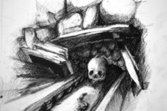 Leichtsinnig krieche ich weiter. Auf einmal sehe ich sie vor mir: APOLLONIA! Ihr Schädel liegt auf dem geöffneten Sarg. Ringsum ein Elend von Schutt und menschlichen Knochen. Grabräuber! Was tun? Soll ich wenigstens den Schädel meiner Urgroßmutter mit nach Hause nehmen und im Keller meines Hauses in Ratingen verwahren?