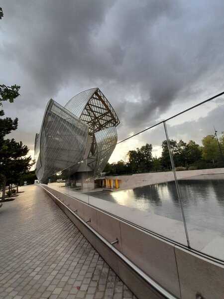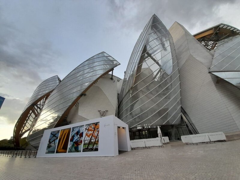 Zunächst wäre das von außen zu bestaunende Museumsgebäude der Fondation Louis Vuitton zu nennen, von Frank Gehry, dem weltberühmten amerikanischen Architekten geplant und gebaut, dessen Name auch mit dem Guggenheim-Museum in Bilbao zu verbinden ist. Der Fassade sind zwölf Elemente aus Stahl, Holz und Glas vorgelagert, die Schiffssegeln ähneln.