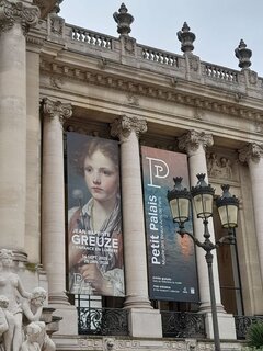 Unter den Werbeplakaten am Flughafen, die aber auch an Zäunen, Mauern und Litfaßsäulen der Grands Boulevards hängen, stechen zweierlei hervor, auf denen Porträts abgebildet sind: ein Knabenkopf, leicht zur Seite geneigt, mit nach vorne blickenden durchdringenden blauen Augen und rötlich-blondem Kraushaar und ein Profilbild einer Frau mit stark nach hinten gewandtem Kopf, die auf eine brennende Kerze starrt. Damit soll auf zwei einmalige Sonderausstellungen aufmerksam gemacht werden: die eine dem Maler Jean-Baptiste Greuze, die andere Georges de La Tour gewidmet.