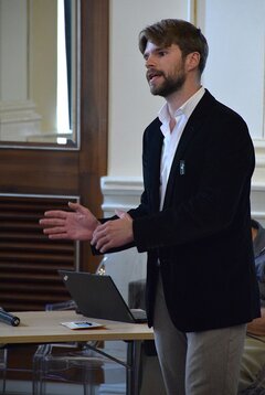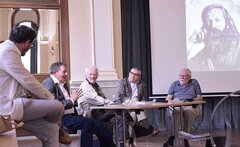 Gusto Gräsers Ideenwelt aber verjährt nicht, und in den Spiegelsaal gekommen war man ausschließlich, um sich bis in die Nachmittagsstunden von ihr und Verwandtem kontrovers angeregt unterhalten zu lassen. „Der Mann war, was man heute einen Influencer nennt”, sagte Helmut Andreas Adams, und nahm dadurch den Kernbegriff vorweg, den in Anlehnung an Gusto Gräser als zeitweisen Höhlen-Bewohner Prof. h.c. Dr. Jürgen Henkel zum Thema seines Vortrags „Der heilige Arsenie Boca (1910-1989) – ein orthodoxer ´Influencer´?” hatte. Zwecks deutschen Sprechens über Biografie und Wirken des Anfang Februar 2025 von der Orthodoxen Kirche Rumäniens (BOR) heiliggesprochenen Priestermönchs Arsenie Boca hätte die GGG keinen qualifizierteren Theologen einladen können. „Heilige wie Arsenie Boca wollen nicht Follower, sie wollen hinter Christus verschwinden”, äußerte im Spiegelsaal Dr. Jürgen Henkel, Pfarrer der Evangelisch-Lutherischen Kirche in Bayern. „Sie suchen nicht die Welt, sie fliehen die Welt”, was auch Freidenker Gusto Gräser auskostete.