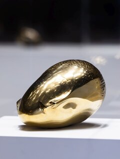 1903 verließ der junge Bildhauer, der gerade erst sein Studium an der Kunstakademie Bukarest beendet hatte, sein rumänisches Heimatland und brach zu einem Fußmarsch mit Zwischenstationen in Wien, München und Langres nach Paris auf, das er völlig erschöpft genau am französischen Nationalfeiertag, am 14. Juli 1904, erreichte. Constantin Brâncu{i, 1876, in Hobi]a, im ländlichen Rumänien als Sohn einer einfachen Bauernfamilie zur Welt gekommen, sollte einen eigenständigen künstlerischen Weg einschlagen und die Bildhauerei sozusagen neu definieren. Er fand zwar in Paris schnell Anschluss an die künstlerische Moderne, musste aber auch viele Widerstände in Kauf nehmen. Er war überzeugt, dass das Material, mit dem er arbeitete – Marmor, Stein, Holz, Gips und Bronze –, ein Eigenleben hatte, eine Einzigartigkeit und Essenz, die er aufspüren wollte, um die darin enthaltene Form freizulegen. Er wollte eine perfekte Form gewinnen, sozusagen das Materielle ins Immaterielle überführen. Dieser Prozess der „Entmaterialisierung“ ist als sein wichtigster Beitrag für die Entwicklung der Plastik angesehen worden – das Material wird bis in die äußerste Oberflächenspannung, bis zur spiegelnden Form ausgeführt.
