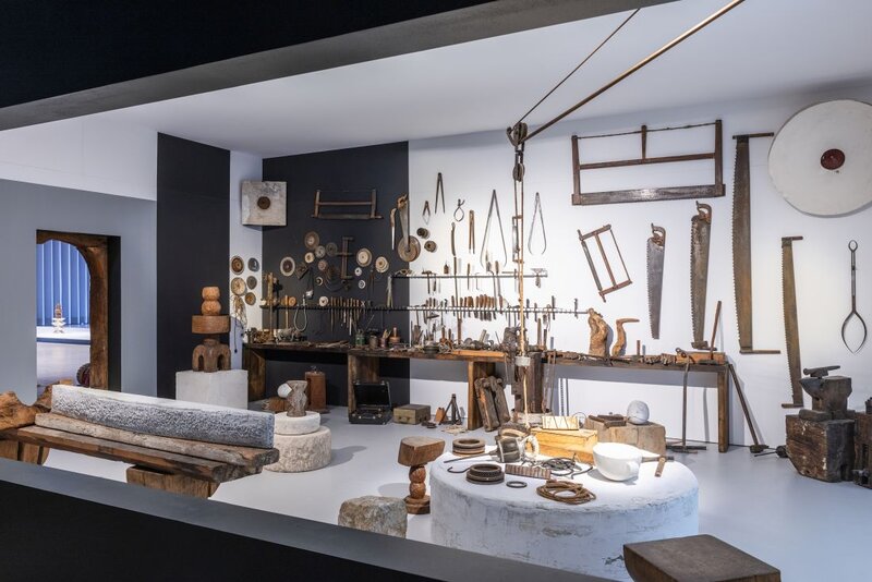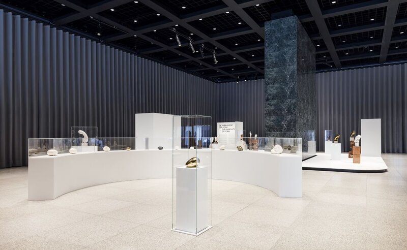 In Kooperation mit dem Centre Pompidou in Paris zeigt jetzt die Neue Nationalgalerie in Berlin eine große Jubiläumsschau des säkularen Bildhauers zu seinem 150. Geburtstag. Die Kuratorinnen Ariane Coulondre (Paris) und Meike Steinkamp (Berlin) erkunden dessen faszinierende Welt in einem thematischen Rundgang von mehr als 150 in Szene gesetzten Werken; sie folgen damit einem Prinzip Brâncu{is, der seit den 1920er Jahren immer stärker seine Werke zu inszenieren begonnen hatte. Im Zentrum steht die Rekon-struktion eines Teils des Ateliers des Bildhauers in der Impasse Ronsin 11, das für ihn ein Ort des Lebens und Schaffens war und das der Künstler dem „Musée national d’art moderne“ vermacht hatte. Sein berühmtes Atelier war das Museum seiner Werke und zugleich ein Gesamtkunstwerk. Seine Skulpturen traten hier miteinander in Austausch, eine Skulptur kündigte jeweils den Übergang zur anderen an. Durch Änderungen ihrer Position oder unterschiedliche Sichten erlebten sie eine unvorhergesehene Transformation und Metamorphose. Seit den 1920er Jahren stellten sich im Atelier die Besucher ein, Brâncu{i befreite dann seine polierten Skulpturen von ihren schützenden Hüllen und setzte den in den Sockeln verborgenen Motor seiner „Leda“ in Bewegung. Mit Fotos hat er selbst die sich ständig wandelnde Struktur seiner Werke dokumentiert. 1927 musste er sein Atelier aufgeben und dank der Unterstützung seines Freundes, des Malers und Objektkünstlers Marcel Duchamp, lebte er nun bis Lebensende in der Impasse Ronsin 11.