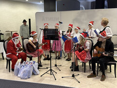 Die Kinder freuten sich, ließen sich mit ihm fotografieren, erzählten ihm Geschichten und sangen Weihnachtslieder.
