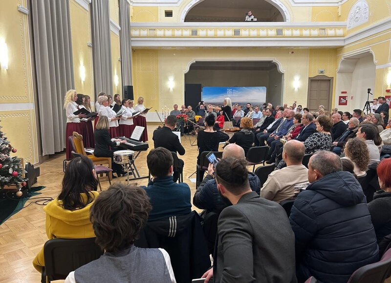 Sathmar – Am zweiten Samstag im Dezember fand im Haus der Handwerker ein gemeinsames Weihnachtskonzert statt. Der Air-Chor des DFD Sathmar, das FourEver-Streichquartett der Dinu-Lipatti-Philharmonie sowie Schülerinnen und Schüler der Musikschule Sathmar waren die Akteure des Abends. Zu Beginn begrüßte Stefan Kaiser, Vorsitzender des Stadtforums Sathmar, die Anwesenden. In seiner kurzen Rede hob er die Bedeutung der Bewahrung kultureller Werte hervor. Dirigiert von der Musiklehrerin Maria Schmidt und begleitet vom FourEver-Streichquartett sowie von Dorka Kozma am Klavier, sang der Air-Chor zunächst Weihnachtslieder wie Der Trommelmann, Adeste fideles, La vitleem colo-n jos und Ó gyönyörü szép…. Anschließend spielten Dorka Kozma am Klavier, Ábel Zoárd Orosz an der Gitarre und Áron Gyimesi an der Trommel englische Weihnachtslieder.Das FourEver-Streichquartett präsentierte deutsche Weihnachtslieder, danach sang der Air-Chor unter anderem religiöse Lieder von Johann Sebastian Bach, Halleluja von Leonard Cohen sowie Stille Nacht von Franz Xaver Gruber. Zum Abschluss bedankten sich die beiden Moderatorinnen beim Deutschen Forum für die Unterstützung und luden alle Anwesenden zu einem Anstoßen auf ein frohes Weihnachtsfest und ein gutes neues Jahr ein.