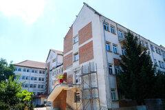 Bei den anderen drei Gebäuden des Krankenhauses wurde der Außenputz abgetragen, um ein neues Wärmedämmsystem anzubringen sowie sämtliche Fenster und Türen zu erneuern.