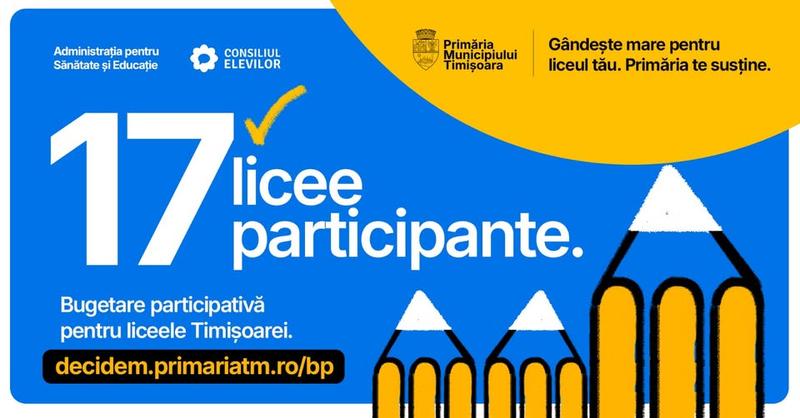 Temeswar – Im Rahmen des „Nationalen Jahres des Kindes“ hat die Stadt Temeswar/Timișoara ihre diesjährige Kampagne zur partizipativen Budgetierung erstmals den Schülern der Lyzeen gewidmet. Insgesamt 17 Bildungseinrichtungen haben sich angemeldet. Nun haben die Jugendlichen einen Monat Zeit, Projektvorschläge zu erarbeiten, über die sie anschließend selbst abstimmen werden.