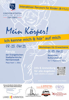 Hermannstadt – Hauptsächlich Lehrerinnen und Lehrer werden eben erst gestern und vorgestern jeweils nachmittags im Deutschen Kulturzentrum auf der Wintergasse/Str. Timotei Popovici an einer Fortbildung zum Thema Missbrauchs-Vorbeugung teilgenommen haben, ehe heute Abend um 17 Uhr in der Ferula der evangelischen Stadtpfarrkirche der interaktive Parcours „Mein Körper! Ich kenne mich und hör´ auf mich“ für 8 bis 11 Jahre alte Kinder öffentlich zur Vorstellung gelangt.