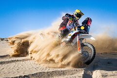 Dafür setzt der Routinier in diesem Jahr auf eine neue KTM 450 Rally Replica. Technisch entspricht sie dem Vorjahresmodell, doch das Motorrad, mit dem Gyenes 2025 triumphierte, wird nicht mehr eingesetzt: Die Țiriac-Stiftung, die ihn unterstützt, hat die Maschine aufgrund der besonderen Saison in ihre Sammlung aufgenommen und ihm stattdessen ein neues, baugleiches Motorrad zur Verfügung gestellt.