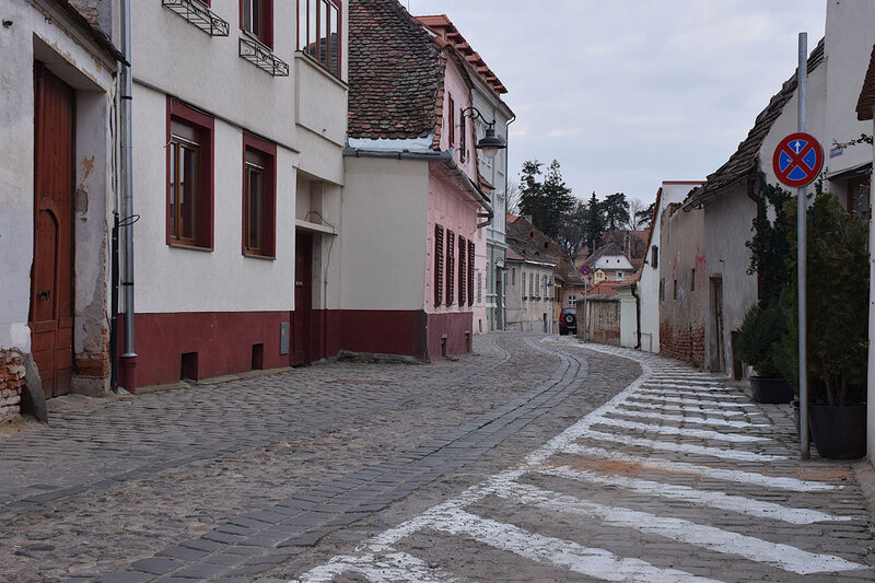 Hermannstadt – Einheimischen und gelegentlich auswärtigen Autofahrern, die sich seit längeren Jahren schon in Hermannstadt/Sibiu und dem engen Geflecht seiner Einbahnstraßen und alten Kopfsteinpflaster-Gassen auskennen, bereitet es je nach augenblicklicher Situation verstärkte Schwierigkeiten, dass auf Rathaus-Betreiben die Parkmöglichkeiten in der Stadtmitte zwar nicht quantitativ stark eingeschränkt, jedoch immer flächendeckender kostenpflichtig angepasst werden. Es gibt berüchtigte Stoßzeiten, wie zum Beispiel die Wochenenden ab Mitte November und damit der Öffnung des Weihnachtsmarkts auf dem Großen Ring/Piața Mare, der die urbanen Gästezahlen sprungartig in die Höhe schnellen und das Parkplatz-Auftreiben besonders zur Abendzeit einer Geduldsprobe gleichkommen lässt. Weswegen der ein oder andere City-Breaker am Steuer zur Antwort auf Parkplatz-Vollauslastung auch schon mal das Risiko eingeht, ein Parkverbot zu missachten, und der polizeilich bestellte Abschleppwagen stets nicht lange auf sich warten lässt. Für eine erhöhte Straßenverkehrs-Frequenz ist Hermannstadts Kern genauso wenig empfehlenswert wie die Zentren anderer beliebter Städte Siebenbürgens auch. Und im Rathaus Hermannstadt wurde kürzlich der Entschluss gefasst, weitere 83 Straßen von der bislang gebührenfreien Parkerlaubnis auszunehmen, nachdem die entsprechenden Modalitäten für alle Fahrbahnen in ultrazentraler Lage ausgeschöpft worden waren – bis auf die Neustift-Zeile/Str. Movilei und den hier abgebildeten Hundsrücken/Str. Centumvirilor, wo noch zu Anfang des Jahres kostenlos geparkt werden konnte. Weil aber beide Verkehrswege sich für PKWs als sehr eng erweisen, fiel einmal der Entscheid durch das Rathaus, die Parkmöglichkeiten gänzlich zu streichen und überall dort, wo ab sofort Verbot gilt, die Fahrbahn mit weißer Farbe im schrägen Muster zu kennzeichnen. Zum Vorteil von ohnehin nicht halten wollenden Autofahrern und von Fußgängern. Referenz sind örtlich nicht mehr die irrelevant gewordenen Halteverbots-Schilder, sondern einfach die neuen Markierungen zur Sperre auf dem alten Kopfsteinpflaster selbst. In naher bis mittlerer Zukunft werden alle gebührenpflichtigen Parkplätze stadtweit in blauer Farbe markiert.