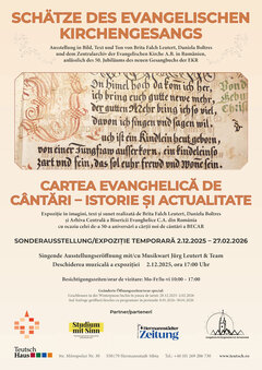 Zu diesem Anlass konzipierten Britta Falch-Leutert und Daniela Boltres in Zusammenarbeit mit dem Zentralarchiv der EKR eine Ausstellung mit dem Titel: Schätze des Evangelischen Kirchengesangs. Mit Bild- und Tonmaterial führt die Ausstellung durch den Werdegang evangelischer Gesangbücher mit einem besonderen Fokus auf Siebenbürgen. Die Ausstellung, nachdem sie in der Evangelischen Kirche in Hermannstadt besucht werden konnte, wurde an mehreren Orten in Rumänien gezeigt. Nun wird die Ausstellung erneut in Hermannstadt zwischen dem 2. Dezember 2025 und dem 27. Februar 2026 im Begegnungs- und Kulturzentrum „Friedrich Teutsch“ besichtigt werden können.