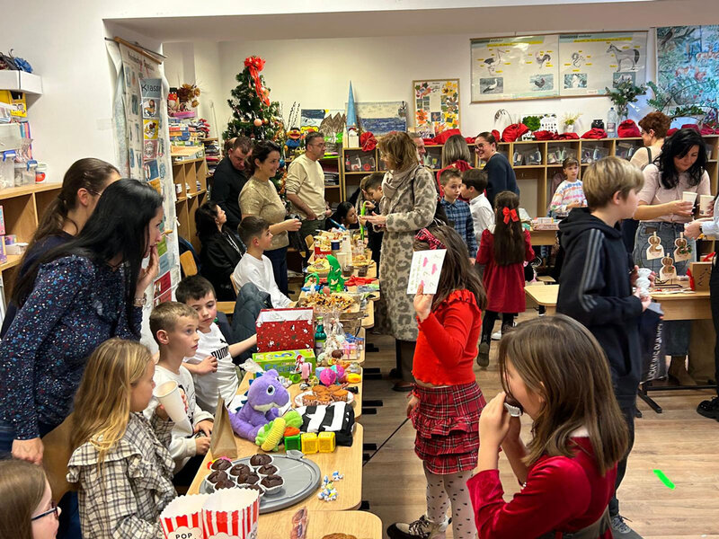 Nach dem Programm begann der eigentliche Basar: Weihnachtsschmuck, Lebkuchen, kleine Spielsachen und vieles mehr wurden verkauft und gekauft. Gegen Abend verließen die letzten Kinder – müde, aber zufrieden und glücklich – gemeinsam mit ihren Eltern die Schule.