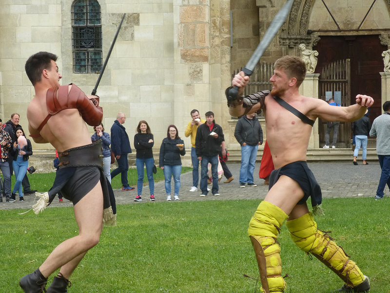 Die Festung Carolina in Karlsburg/Alba Iulia bot vom 3. – 5. Mai ein grandioses Ereignis der Extra-Klasse: Festivalul Roman Apulum unter dem Motto „AUFSTAND“. Mitgewirkt haben an diesem Mega-Event über 200 Akteure, bei einer spannenden Inszenierung zur Auferstehung der Antike des 2. und 3. Jahrhunderts vor Christi mit authentischen Aufführungen aus der Historie, militärischen Demonstrationen von Legionen und römischen Hilfstruppen, zum Beispiel aus Spanien und dem Alten Rom. Es gab Dakische Krieger und Gladiatorenkämpfe, einen Sklavenmarkt sowie Tanzdarbietungen verführerisch wirkender Nymphen der Tanzgruppe „Nimfele Dace“ zu bestaunen. Zudem luden Werkstätten wie Töpfereien und Webereien im Stile der damaligen Zeit zu Bastelworkshops zum Mitmachen ein. Auch das Bogenschießen erfreute sich großer Beliebtheit. Das Festivalul Roman Apulum 2019 war bereits die VII. Edition. Dieses Kulturereignis ist eine der wichtigsten vom Rathaus organisierten Veranstaltungen und stellt ein markantes Markenzeichen auch außerhalb Siebenbürgens dar.