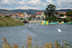 Heute befindet sich hier ein kleiner Strandabschnitt mit Liegestühlen und der Möglichkeit, Strandvolleyball zu spielen. Eine besondere Attraktion für Kinder ist der auf dem Wasser gelegene Spielplatz WIBIT, der aus verschiedenen Parcours mit Rutschen, Trampolinen und Hindernissen besteht. Der See bietet außerdem die Möglichkeit, in zwei unterschiedlichen Schwierigkeitsgraden Wasserski, Wakeboard oder Kneeboard zu fahren. Auch Kajakfahren und Stehpaddeln sind möglich.