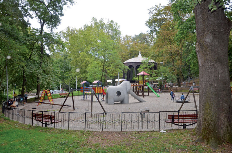 Zentraler Anlaufpunkt für Kinder ist der Spielplatz im Zentrum des Parks, beliebt wegen des großen Beton-Elefanten, der die Mitte des blumenumrankten Platzes ziert. Moderne Sportgeräte unterhalb des Hermannstädter Stadions laden zu Bewegung für zwi-schendurch ein. Einkehren kann man derzeit im Restaurant „Sub Arini“; das beliebte Traditionslokal „Bolta Rece“ soll in Kürze mit einem neuen Raum- und Kulinarik-Konzept wiedereröffnet werden.