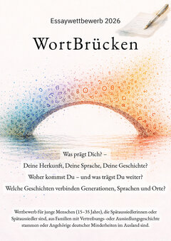 Hier setzt „WortBrücken“ an. Der Wettbewerb versteht Sprache nicht nur als Ausdrucksmittel, sondern als verbindendes Element: zwischen Vergangenheit und Gegenwart, zwischen individueller Biografie und kollektiver Geschichte. Der Essay als gewählte Form ist dabei bewusst offengehalten. Er erlaubt persönliche Erzählungen ebenso wie analytische Reflexionen und bietet Raum für Zwischentöne, Ambivalenzen und Brüche – all das, was komplexe Identitäten ausmacht.