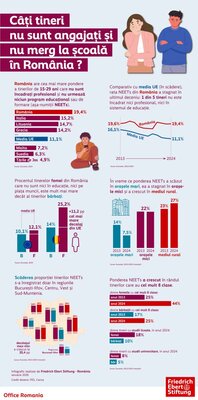 Rumänien hat weiterhin EU-weit den größten Anteil an Jugendlichen zwischen 15 und 29 Jahren, die weder arbeiten noch an irgendeinem Ausbildungsprogramm teilnehmen, man nennt diese Personenkategorie NEETs (Not in Education, Employment or Training): 2024 waren es 19,4 Prozent, also rund eine von fünf Personen der genannten Alterskategorie.
