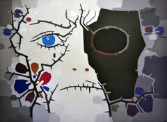 Die ausgestellten Gemälde reflektieren konkrete historische Ereignisse wie die Wende von 1989, die Auswanderung der deutschen Minderheit oder die eigene Perspektive über die erlebte Zeit, wie zum Beispiel im Gemälde „Ecce homo“. „Das ist unsere Welt. Das Leben. Ein etwas gequältes Leben. Es widerspiegelt das damalige Jahrhundert der Kriege, wobei auch dieses ein Jahrhundert der Kriege ist. Die Augen und der Mund des Menschen bestehen aus Stacheldraht, aus Dornen. Ein dorniges Leben. Dornen die einen gefangen halten“, beschreibt Schuster das Gemälde.