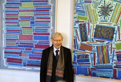 Die frühe Kindheit des am 1. September 1936 in Brenndorf/Bod geborenen Künstlers war von den Geschehen um den Zweiten Weltkrieg geprägt: der Vater war im Krieg, dann wurde die Mutter für zehn Jahre nach Russland deportiert. Doch sollte dieses seine künstlerische Ader nicht unterdrücken. „Erste richtungsweisende Akzente auf seinem künstlerischen Bildungsweg setzte das Jahr 1952. Als Teilnehmer an einem Malkurs in Kronstadt wird er vom damals fortschrittlichsten und europäisch anerkannten Künstler Hans Mattis-Teutsch unterrichtet. Dessen künstlerische Persönlichkeit sollte Schuster auf den später eingeschlagenen Kunstbildungsweg lenken. Reinhardt Schuster sollte ab da vieles offengehalten, doch auch abverlangt werden“, erläuterte Irmgard Sedler. Untypisch für einen siebenbürgisch-sächsischen Maler beginnt Schuster seine Ausbildung in Bukarest am Nicolae-Tonitza-Kunstlyzeum, worauf das Studium an der Kunstakademie „Nicolae Grigorescu“ folgte. Beginnend mit 1967 macht sich der Burzenländer in der rumänischen Hauptstadt als freischaffender Künstler einen Namen. Dabei schafft er es, die Schranken des sozialistischen Realismus zu umgehen, seinem künstlerischen Credo und seiner eigenen Ausdrucksweise treu zu bleiben. „Reinhardt Schusters elaborierte künstlerische Sprache saugt geradezu die Strömungen der europäischen Kunstentfaltung der 1950 -1970er Jahre auf. Daraus schöpft sie auch ihre Höhepunkte. Sie geht dabei keinen konsequent radikalen Weg in die rein geometrische oder farbexpressionistische Abstraktion, wie das etwa bei Günther C. Kirchberger der Fall ist. Die eine oder andere Richtung taucht als Echo in seinen Gemälden auf und wird zur unverwechselbar eigenen Handschrift. So manches wird hierbei zusammengeführt und stets hinterfangen von dem Wesen der Poesie: Lyrik und Winkelmaß“, beschrieb Sedler die künstlerische Welt des Malers. 1983 wandert Reinhardt Schuster aus und findet im Rheinland im Bereich der Kunsterziehung ein neues Arbeitsfeld. „Er blieb auch weiterhin seinem unverkennbaren Malstil treu und fand auf Ausstellungen erneut Anerkennung“, summierte Irmgard Sedler diese Zeitspanne im Leben des Malers.
