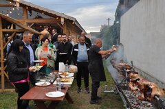 Jedes Jahr zum Herbstbeginn feiert der Deutsche Wirtschaftsclub Siebenbürgen (DWS) in Hermannstadt/Sibiu sein Herbstfest. Die Mitglieder des Clubs wurden für Samstag, den 28. September in den Hof der Evangelischen Akademie Siebenbürgen eingeladen, sich im informellen Rahmen ein paar Stunden bei Speis und Trank mit alten und neuen Bekannten auszutauschen. Das etwas trübe Wetter stellte für die meisten kein Hindernis dar und so trafen ab 17:00 Uhr Mitglieder und Gäste am besagten Ort ein. Hier warteten ein Jungschwein und ein Bock, die schon den halben Tag am Spieß geschmort hatten, ein diversifiziertes Weinangebot und frisches einheimisches Bier auf die Gäste. Clubmitglied Andrei Drăgan-Răduleț hatte freundlicherweise eine bestens ausgestatteten Almhütte zur Verfügung gestellt, deren Charme entscheidend zu der entspannten Atmosphäre beigetragen hat.