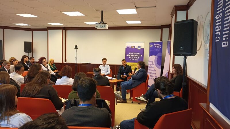 In der abschließenden Sitzung stand das Thema „Barrierefreiheit in der Bildung“ im Mittelpunkt. Fachleute aus Hochschule und Praxis – darunter Diana Giurea (UPT), Cristina C²luianu (AccessibleEU), Lena Laz²r Dermengiu (Gebärdensprachdolmetscherin) und Costi Cristache, ein blinder Lehrer der Sonderschule „Iris“ in Temeswar – diskutierten über reale Bedürfnisse, inklusive Raumgestaltung und Lehrerfortbildung. Eines der Projekte, das vorgestellt wurde, ist die Einrichtung eines Zentrums für Barrierefreiheitsressourcen in Zusammenarbeit mit AccessibleEU.
