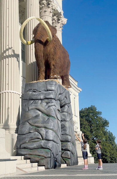 Gleich im Eingangsbereich des Móra-Ferenc-Museums am Roosevelt tér zieht ein lebensgroßes Mammutmodell, umgeben von Soundeffekten und Lichtelementen, wie ein Magnet Besucher an. Vor allem Kinder sind fasziniert – und schon ist die Neugierde geweckt: Was mag wohl im Museum zu sehen sein? Wie eine Tür zu einer Zeitmaschine wirkt der Eingang. Nur einen Atemzug entfernt und schon betritt man die Welt der Eiszeit.