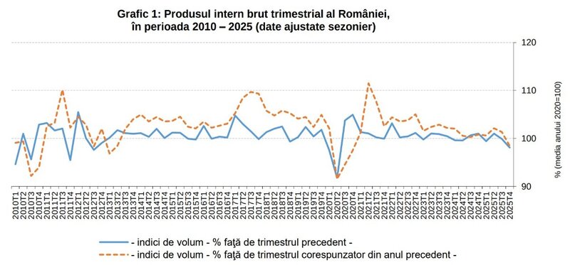 Bukarest (ADZ) - Die Wirtschaftsleistung Rumäniens ist im letzten Quartal 2025 deutlich ins Minus gerutscht: gegenüber dem Vorjahreszeitraum wurde ein Rückgang von 1,6 Prozent registriert, zum Vorquartal ist das Bruttoinlandsprodukt (BIP) des Landes um 1,9 Prozent zurückgegangen (jeweils saisonsbreinigte Daten). Wie aus den am Freitag vom Nationalen Statistikamt (INS) veröffentlichten Daten hervorgeht handelt es sich dabei um die schlechteste Quartalsentwicklung seit der Pandemie- und Lockdownperiode im Jahr 2020. Außerdem liegt nach dem Rückgang zum Vorquartal im Zeitraum Juli bis September 2025 (mit 0,1 Prozent) die rumänische Wirtschaft nun in einer technischen Rezession, also zwei aufeinanderfolgende Quartale, in denen das BIP gegenüber dem Vorquartal gesunken ist.